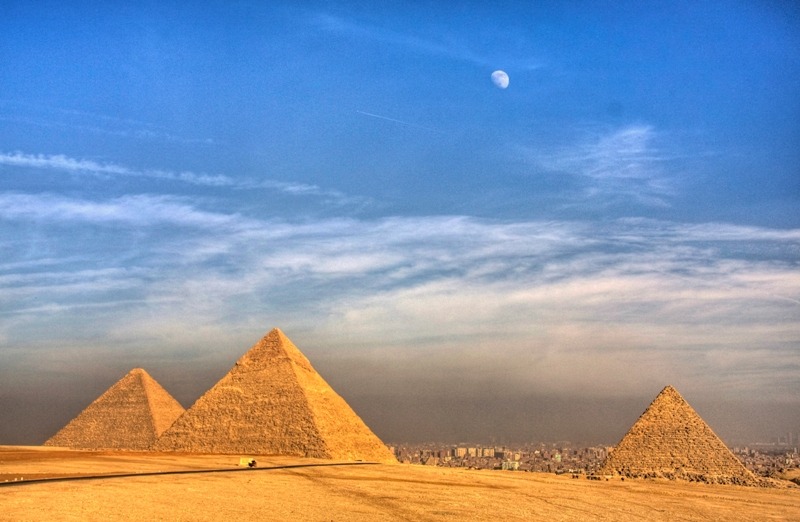 The Great Pyramid of Giza (called the Pyramid of Khufu and the Pyramid of Cheops) is the oldest and largest of the three pyramidsin the Giza Necropolis bordering what is now El Giza, Egypt. It is the oldest of the Seven Wonders of the Ancient World, and the only one to remain largely intact. Egyptologists believe that the pyramid was built as a tomb for fourth dynasty Egyptian Pharaoh Khufu (Cheops in Greek) over an approximately 20 year period concluding around 2560 BC. Initially at 146.5 metres (481 feet), the Great Pyramid was thetallest man-made structure in the world for over 3,800 years. Originally, the Great Pyramid was covered by casing stones that formed a smooth outer surface; what is seen today is the underlying core structure. Some of the casing stones that once covered the structure can still be seen around the base. There have been varying scientific and alternative theories about the Great Pyramid's construction techniques. Most accepted construction hypotheses are based on the idea that it was built by moving huge stones from a quarry and dragging and lifting them into place.